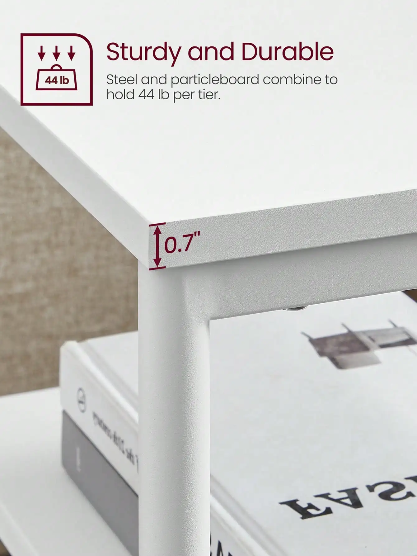 For Small Spaces: Standing at 11.8″D x 13.4″W x 22.8″H, this end table takes up little floor space while serving as a catchall with 3 storage tiers-stage a chamomile cup on the top, a basket on the bottom, and your tablet in the middle Streamlined yet Stunning: Giving an industrial look to any space, from the living room to bedroom, this side table has a clean, understated design while making an impressive statement with its warm rustic brown tone and matte black steel accent Well-Built and Well-Balanced: With particleboard braced by steel side frames, this table is solid and stable, capable of holding 44 lb of items on each tier. Adjustable feet preventing wobbling on uneven floors is an extra factor for its stability Simple yet Smooth: Was assembling a piece of furniture in the past nerve-wracking? Not this time. With clear instructions and numbered parts, the assembly will be completed in 4 simple steps, going like clockwork What You Receive: An end table brimming with an industrial-inspired style, with 3 open tiers for ready-at-hand storage, working as either an occasional table or a nightstand Specifications: Color: Rustic Brown, Black Material: Particleboard, Steel Product Size: 11.8″D x 13.4″W x 22.8″H (30 x 34 x 58 cm) Product Weight: 10.8 lb (4.9 kg) Max. Static Load Capacity per Level: 44 lb (20 kg) Package Contents: 1 x Side Table 1 x Assembly Kit 1 x Instructions VASAGLE Notes: Children are not allowed to climb on or play with the product for safety reasons.